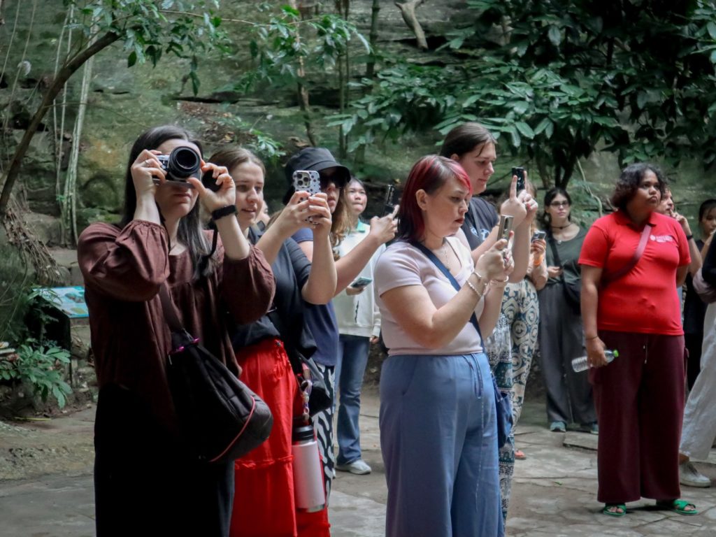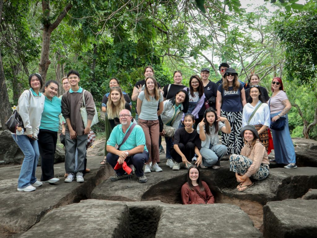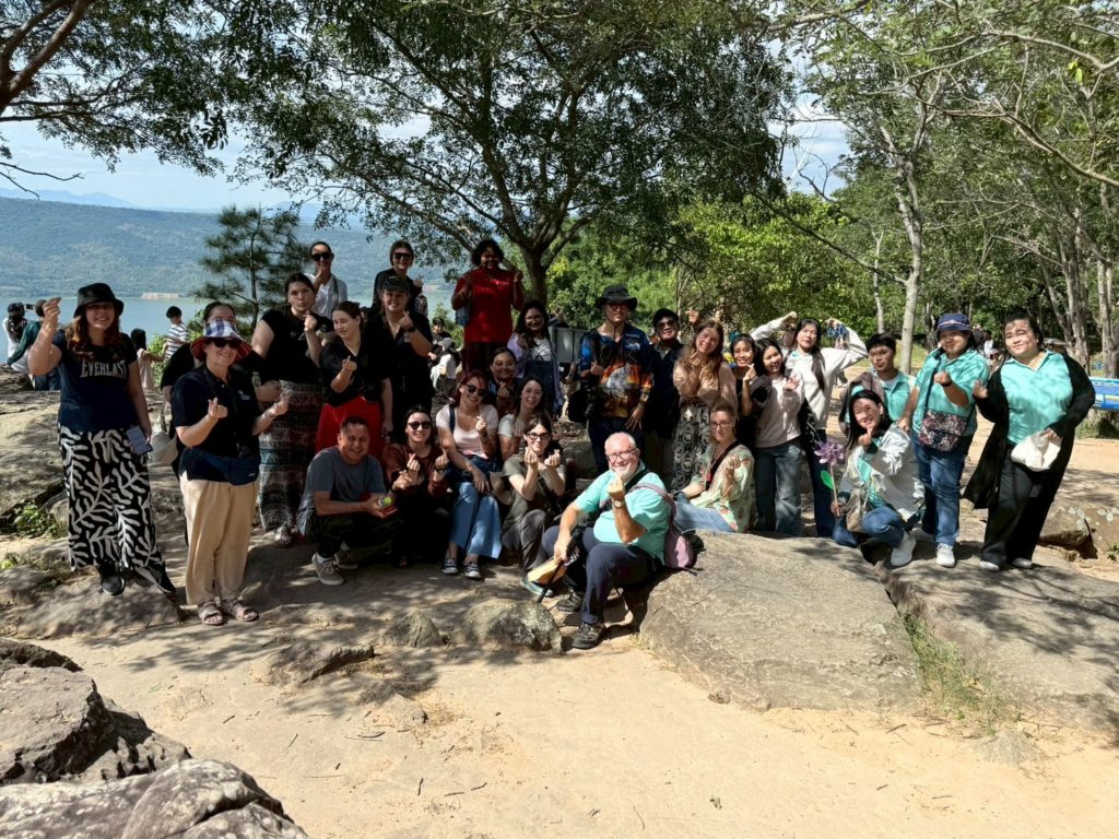 เมื่อวันที่ 25 ตุลาคม 2568 กองวิเทศสัมพันธ์ สำนักงานอธิการบดี มหาวิทยาลัยราชภัฏนครราชสีมา จัดกิจกรรมนอกสถานที่เพื่อเปิดโอกาสให้นักศึกษาแลกเปลี่ยนจาก James Cook University (JCU) เครือรัฐออสเตรเลีย ได้เรียนรู้วิถีชีวิตท้องถิ่นและธรรมชาติของจังหวัดนครราชสีมา โดยเริ่มต้นที่ “แหล่งหินตัดสีคิ้ว–วัดเลิศสวัสดิ์ (เขาจันทน์งาม)” อำเภอสีคิ้ว ซึ่งเป็นพื้นที่ภูมิทัศน์หินทรายที่มีความสำคัญทางธรณีวิทยาและวัฒนธรรมในเขต “อุทยานธรณีโคราช” (Khorat Geopark) ที่อยู่ในเครือข่ายอุทยานธรณีโลกขององค์การยูเนสโก (UNESCO Global Geopark)