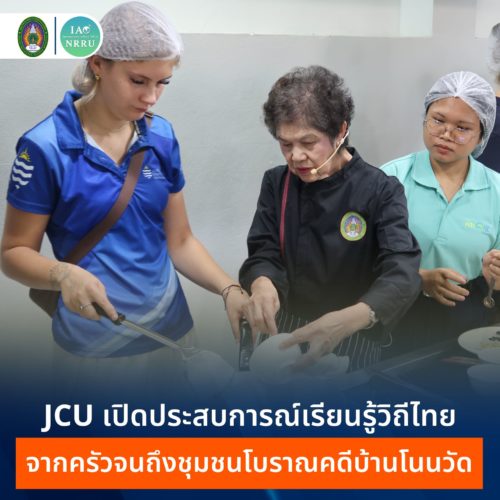 เมื่อวันที่ 28 ตุลาคม 2568 กองวิเทศสัมพันธ์ สำนักงานอธิการบดี มหาวิทยาลัยราชภัฏนครราชสีมา จัดกิจกรรมแลกเปลี่ยนวัฒนธรรมให้แก่นักศึกษาแลกเปลี่ยนจาก James Cook University (JCU) เครือรัฐออสเตรเลีย ร่วมกับนักศึกษาอาสาสมัครล่ามผู้แปลภาษา ผ่านกิจกรรมอบรมเชิงปฏิบัติการ “การทำอาหารไทย” ณ ศูนย์ปฏิบัติการส่งเสริมอาชีพอิสระ (ครัวราชภัฏ) โดยได้รับเกียรติจาก…