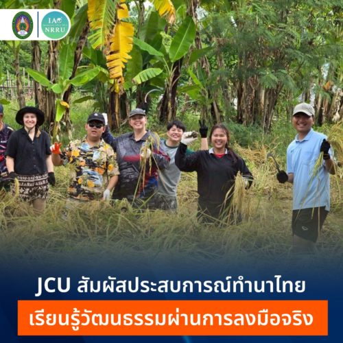 วันที่ 30 ตุลาคม 2568) กองวิเทศสัมพันธ์ สำนักงานอธิการบดี มหาวิทยาลัยราชภัฏนครราชสีมา ได้นำนักศึกษาแลกเปลี่ยนจาก James Cook University (JCU) เครือรัฐออสเตรเลีย พร้อมด้วยนักศึกษาอาสาสมัครล่ามผู้แปลภาษา ร่วมกิจกรรมเรียนรู้การเกี่ยวข้าวตามวิถีชุมชน เพื่อฝึกทักษะการทำงานร่วมกัน เรียนรู้ประเพณีและวัฒนธรรมการทำนาของคนไทยในบรรยากาศอบอุ่นและเป็นกันเอง กิจกรรมดังกล่าวเปิดโอกาสให้นักศึกษาได้เรียนรู้กระบวนการผลิตข้าวแบบดั้งเดิมของชาวนาไทย ตั้งแต่การลงมือเกี่ยวข้าวจริง ไปจนถึงการเรียนรู้คุณค่าของความร่วมแรงร่วมใจในชุมชนไทย ผ่านประสบการณ์ตรงที่เต็มไปด้วยความสนุกสนานและมิตรภาพระหว่างวัฒนธรรม นอกจากนี้…